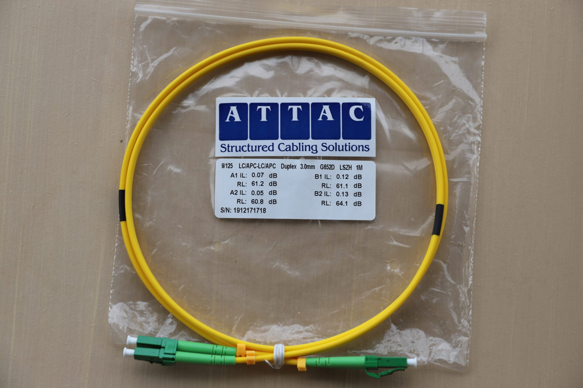 The 1 Metre LC/APC Duplex Single Mode Patch Lead from Attac is engineered for high-performance fibre optic connectivity in demanding environments such as data centres, FTTH installations, and enterprise backbones. Built with precision G657A or G652D single-mode fibre and polished LC/APC connectors, it provides reliable, low-loss transmission for dual-fibre applications.