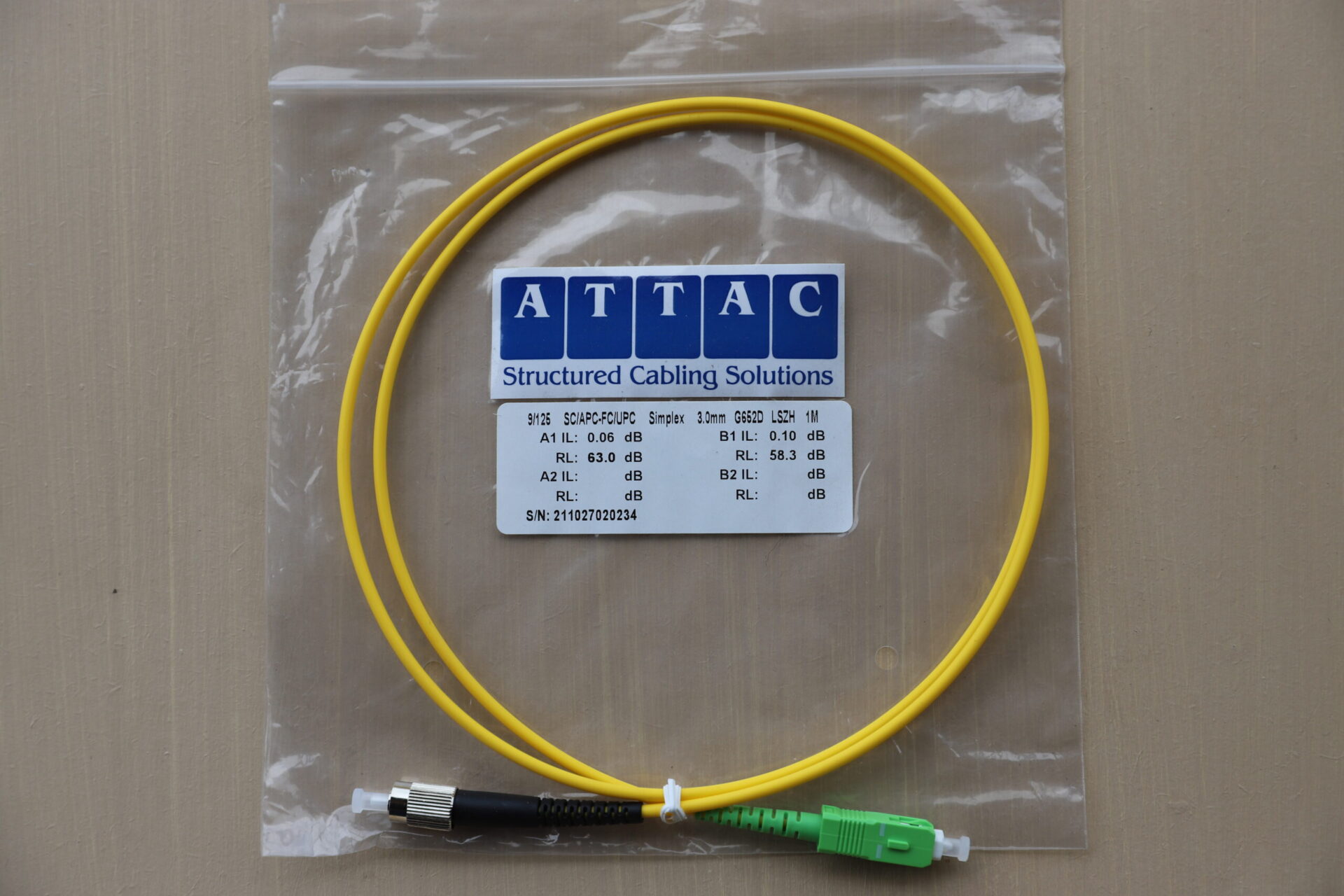 The 1 Metre SC/APC to FC Simplex Single Mode Patch Lead from Attac is a premium fibre optic solution designed for bridging systems with SC/APC and FC interfaces. Built for long-distance, low-loss single-mode applications, this patch lead ensures high reliability and signal clarity in critical networking environments.