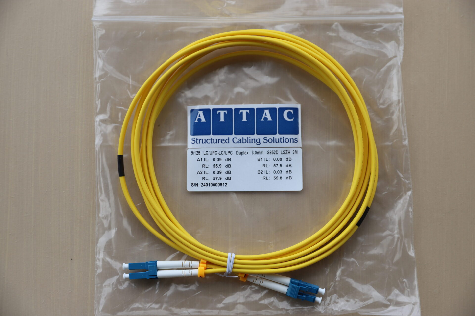 The 3 Metre LC to LC Duplex Single-Mode Patch Lead from Attac is designed for enterprise-grade fibre optic installations demanding ultra-low loss and high reliability. Featuring LC/UPC connectors on both ends, this patch lead supports long-distance single-mode data transmission with exceptional optical clarity and signal integrity.