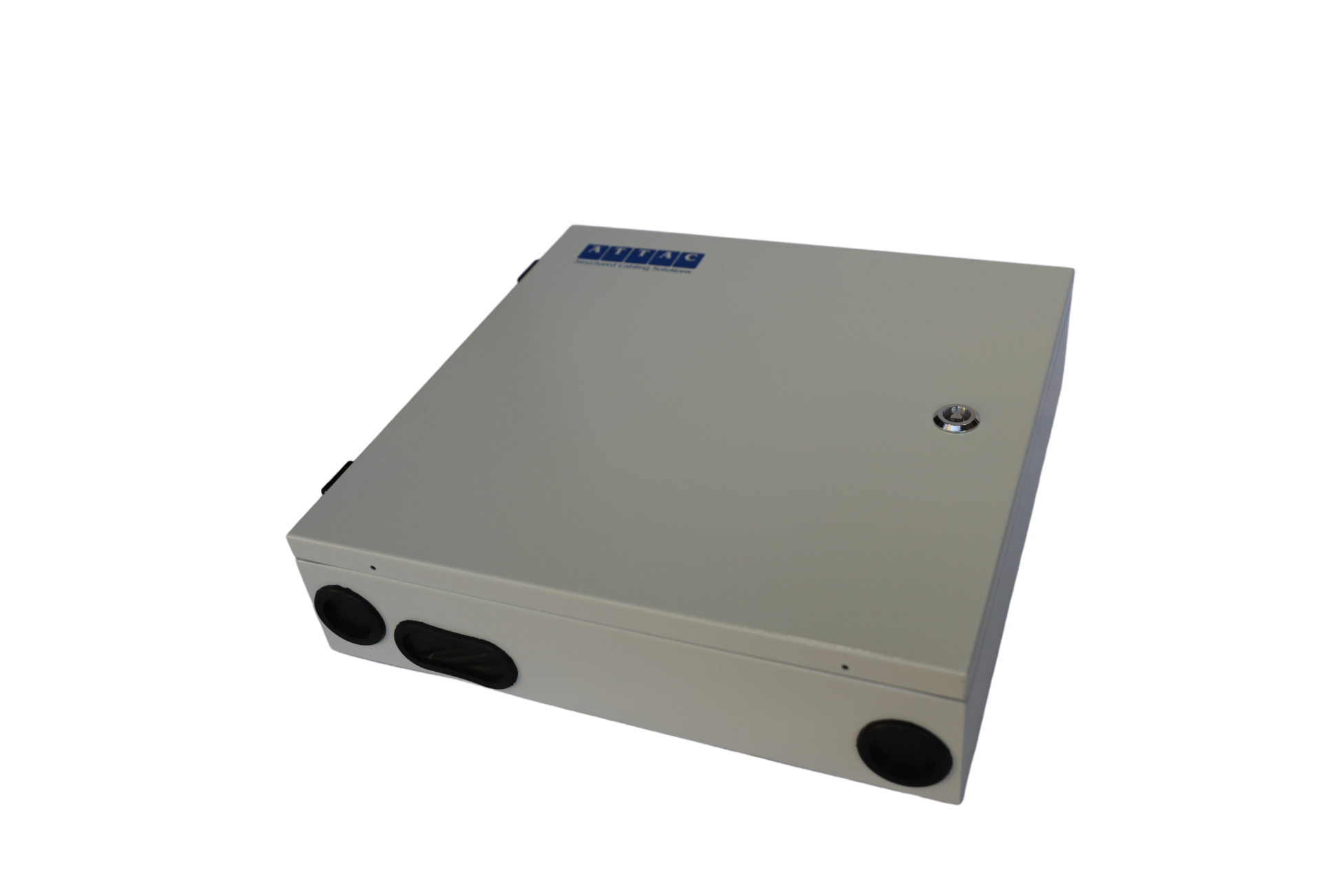 Suitable for wall or pole mounting, this enclosure is ideal for high-density fibre rollouts in residential, commercial, and industrial environments requiring secure, organised, and professional-grade network terminations.
