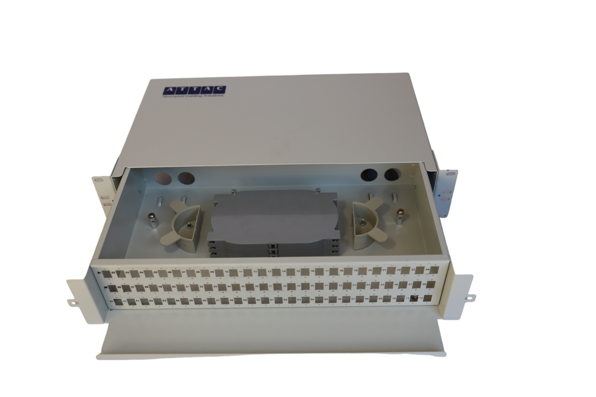 Built to fit standard 19-inch racks and constructed from durable cold rolled steel, the panel supports up to 72 LC duplex adaptors, providing a termination capacity of up to 144 fibres. The 1U or multi-U form factor (depending on configuration) helps optimise space while ensuring clean, organised fibre routing and protection.