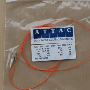 The LC/PC Multi-Mode Fibre Optic Pigtail from Attac is an efficient and cost-effective solution for terminating multi-mode fibre optic links in LAN, data centre, and telecom applications. Equipped with a factory-polished LC/PC connector, this pigtail uses high-quality 50/125µm or 62.5/125µm multi-mode fibre, ensuring optimal signal transmission over short distances.