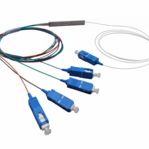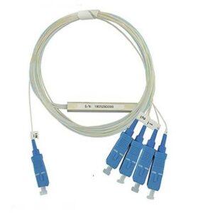 This splitter divides one input fibre into four output channels using SC/UPC connectors.